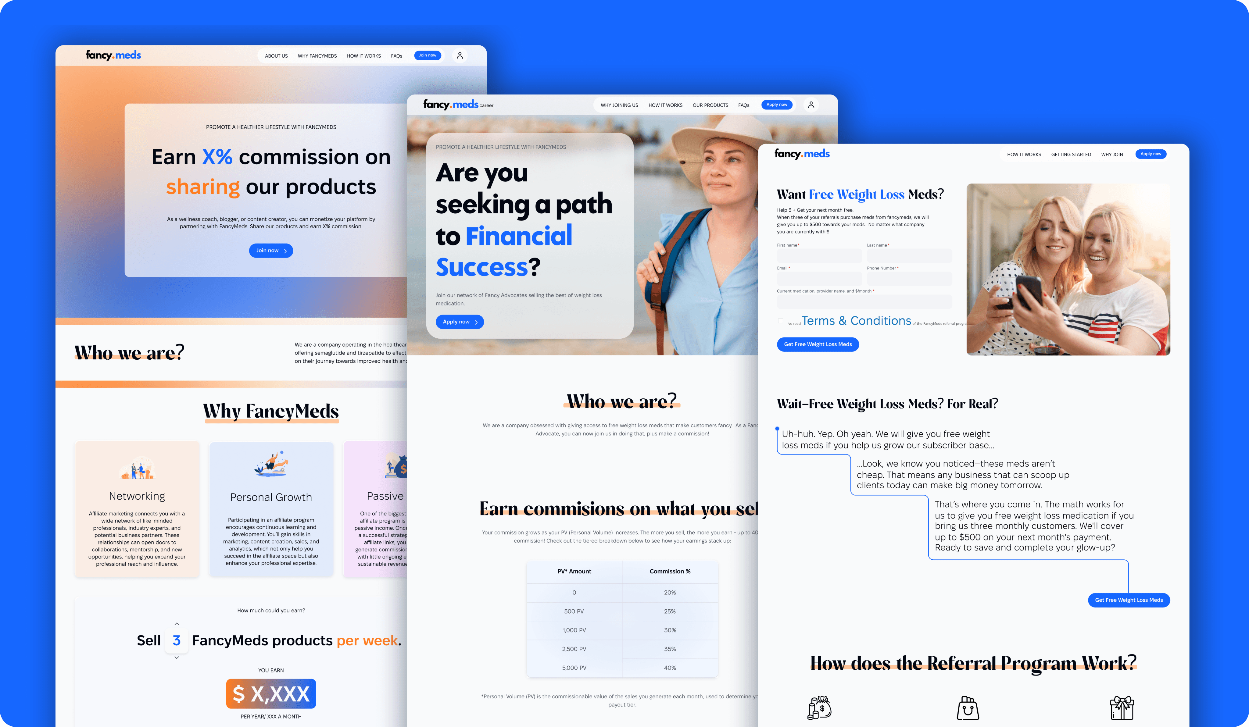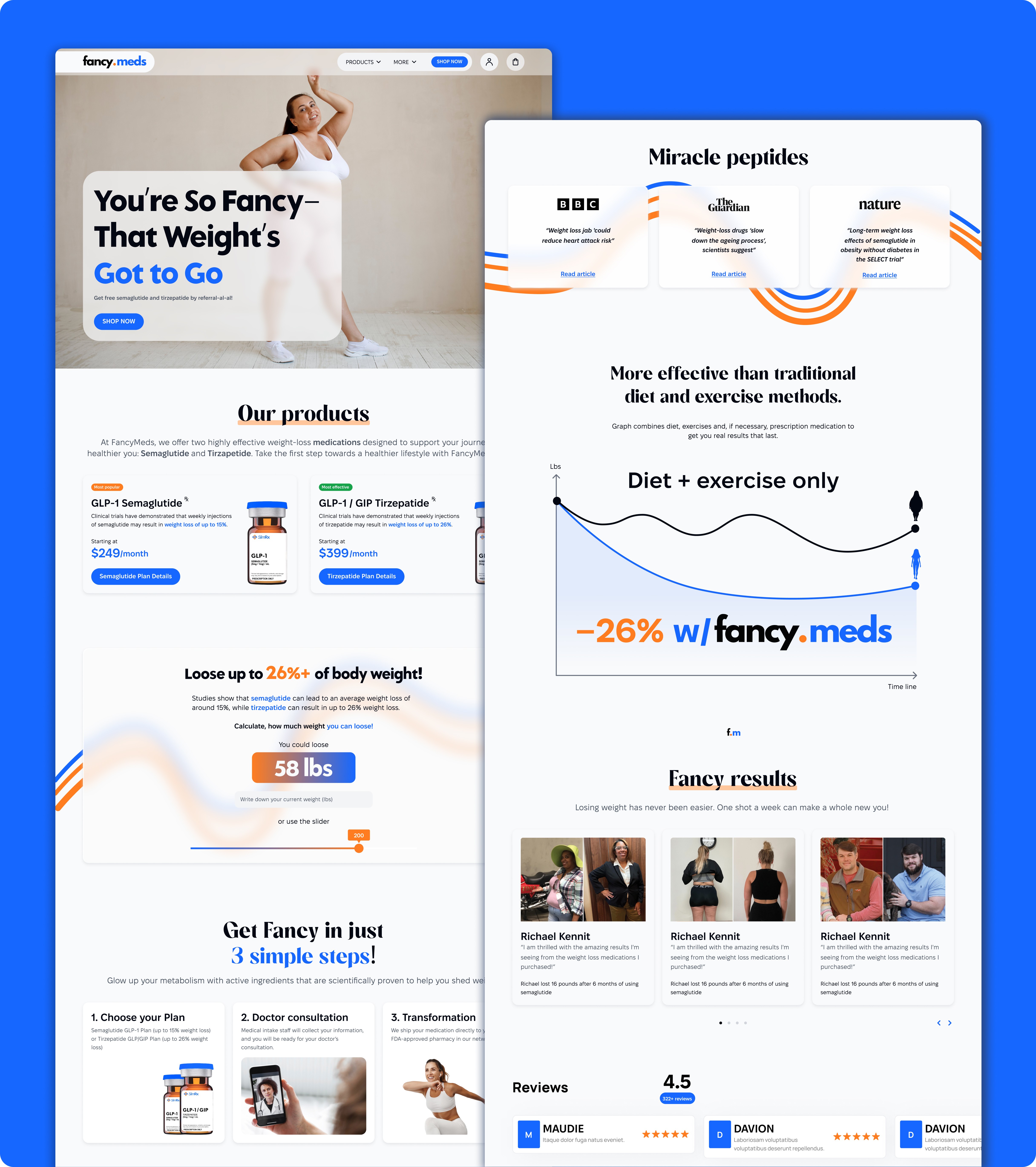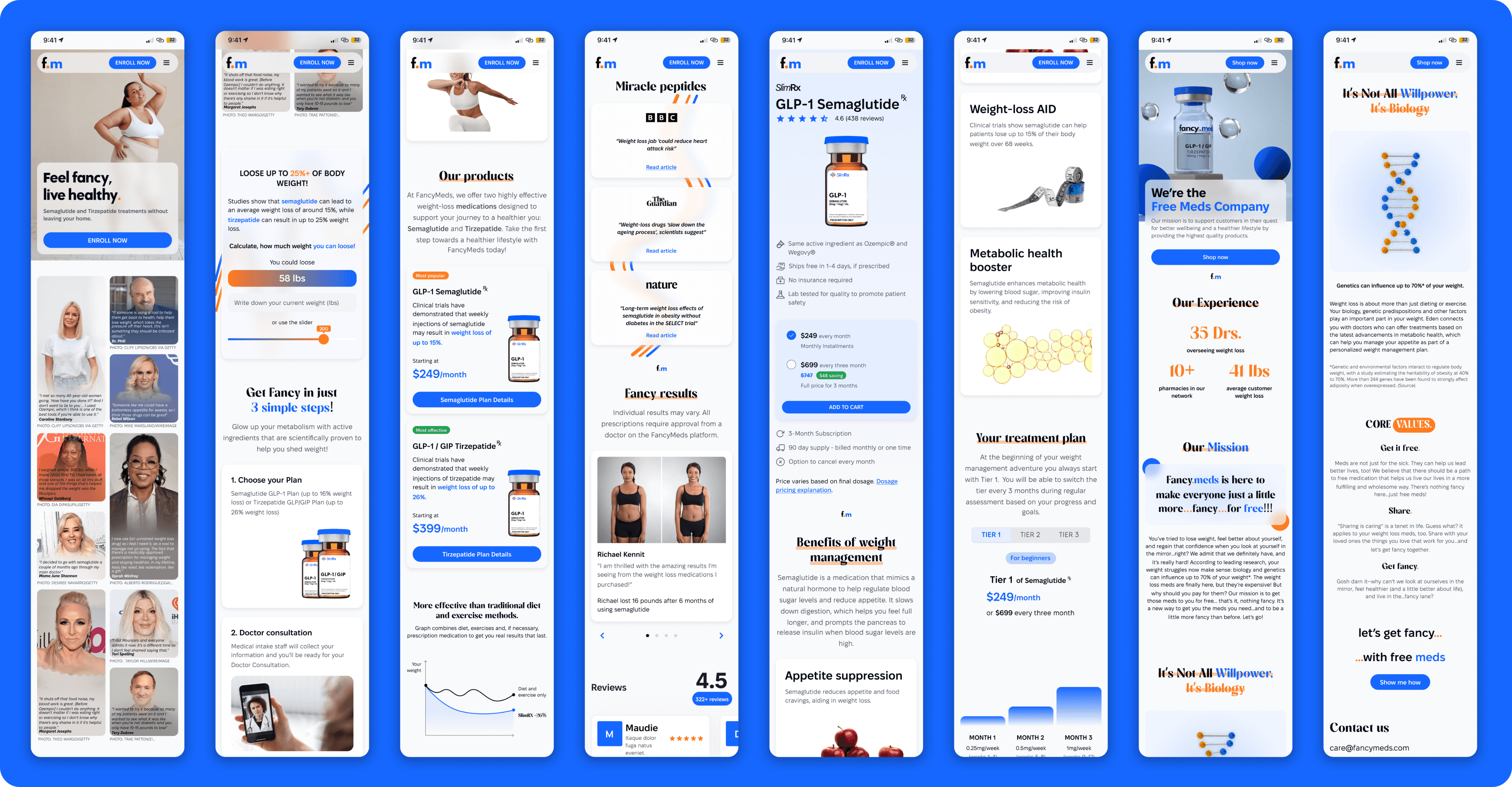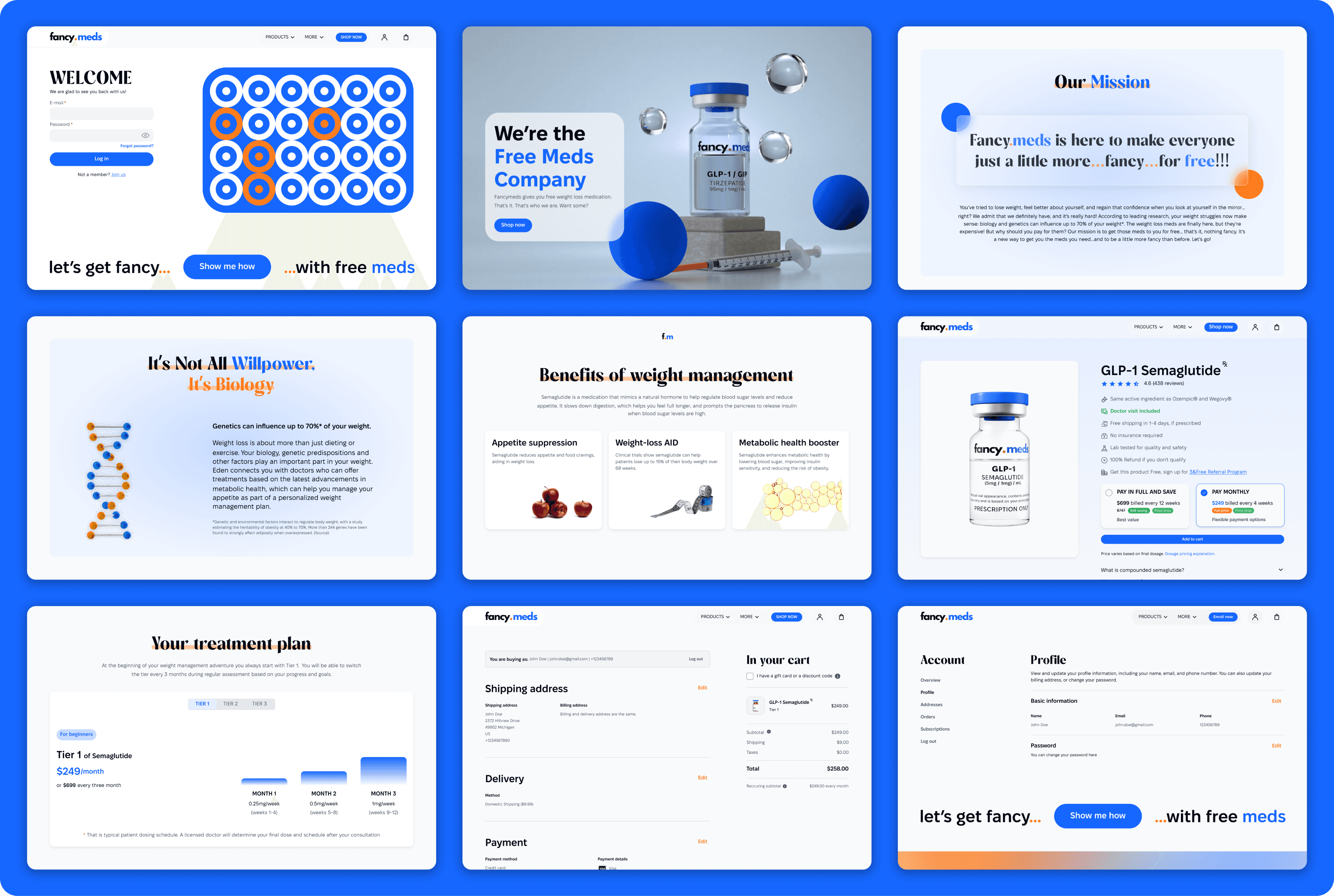 FancyMeds (previously Qyral) is a U.S.-based telehealth platform and licensed distributor of GLP-1 weight-management medication (Semaglutide and Tirzepatide) through partner pharmacies operating nationwide. The business required a complete brand repositioning and a redesigned digital experience to make the treatment process feel clear, trustworthy, and approachable for everyday patients.