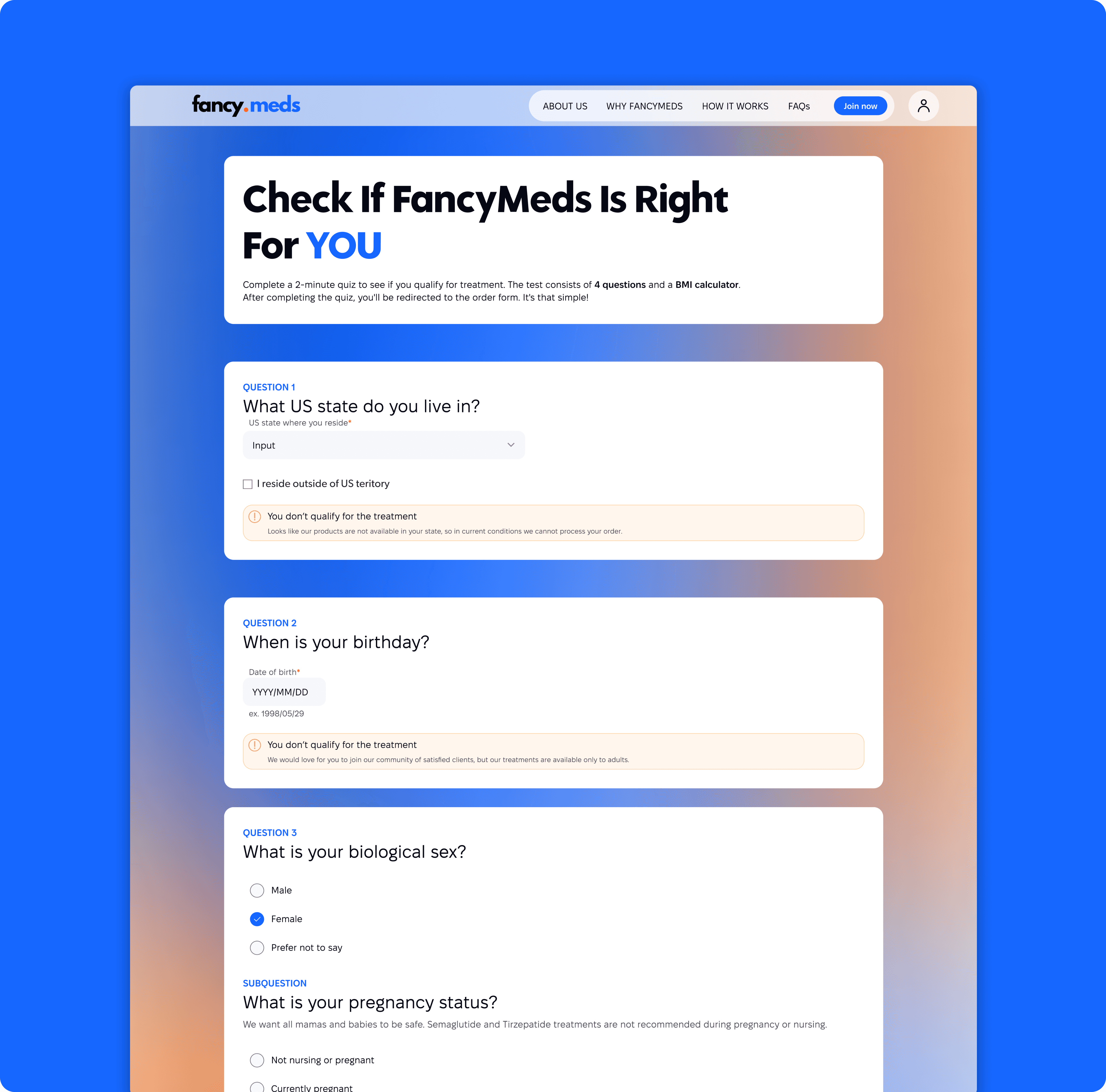 The medical qualification quiz was long, confusing, and difficult to complete, leading to drop-offs during the most critical part of the treatment onboarding.