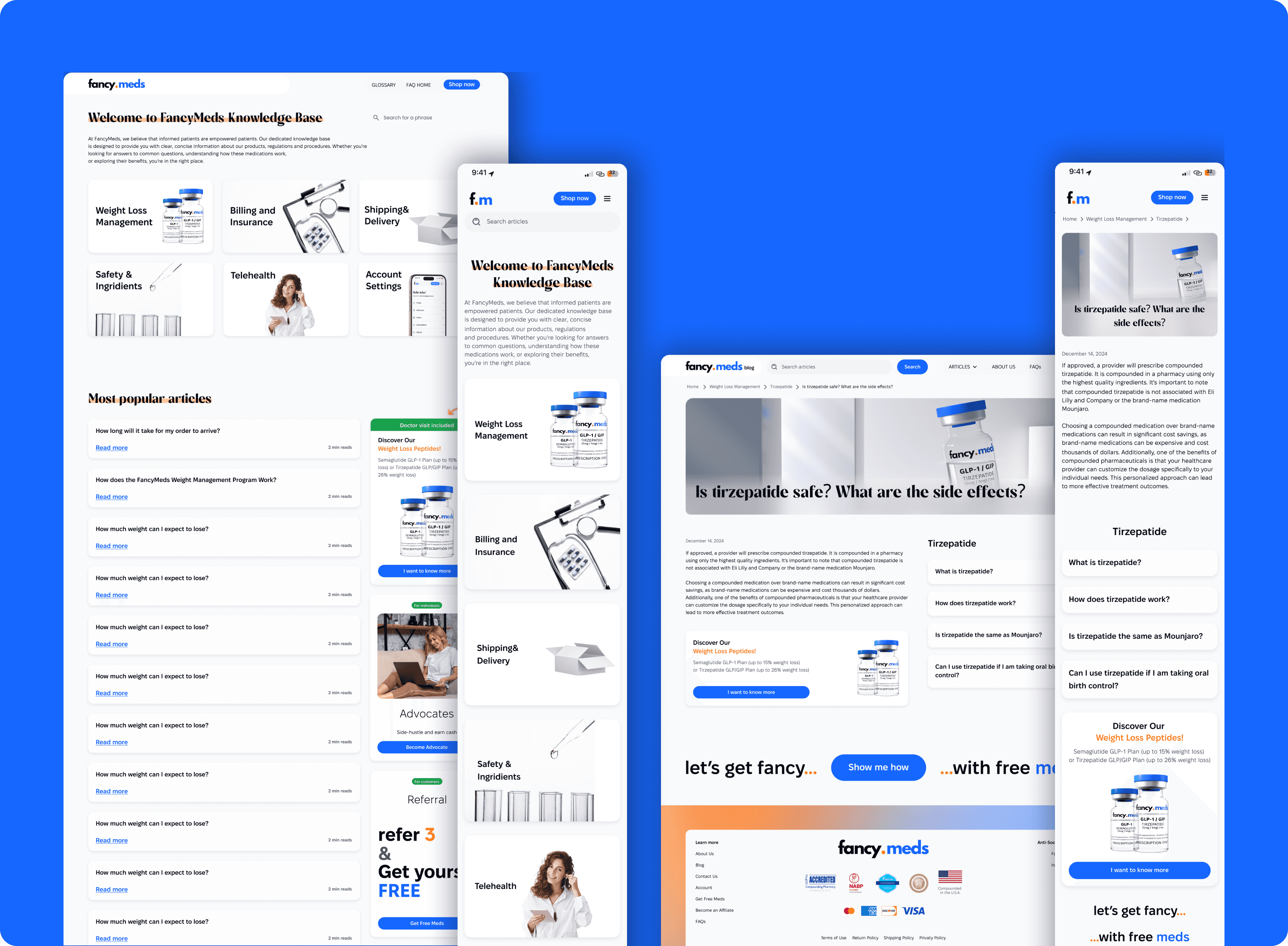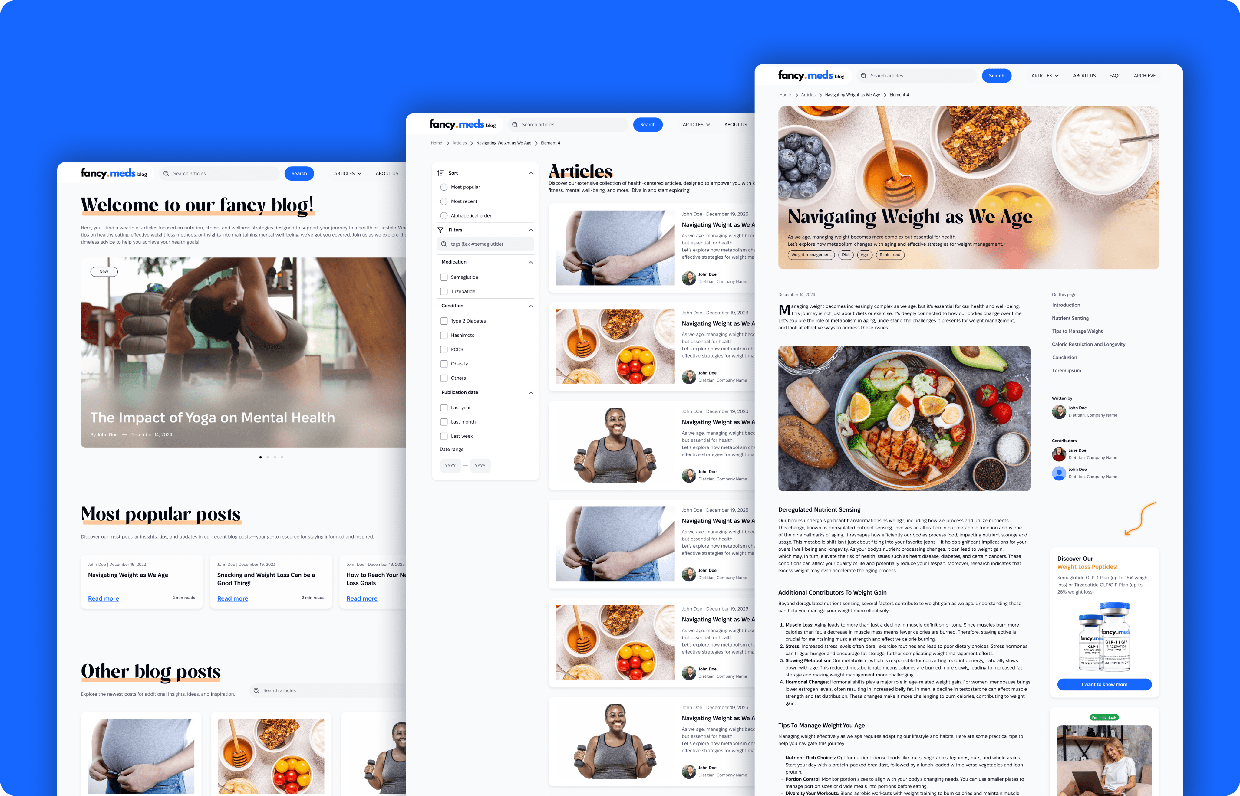 FancyMeds Blog mockups examples; desktop versions