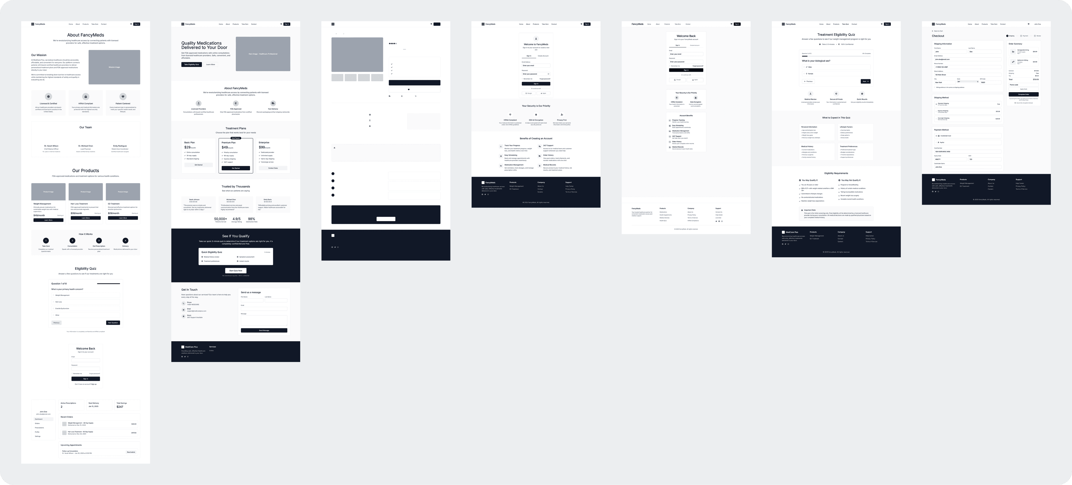 High-fidelity prototypes were developed from the approved mockups, enabling both a clear presentation of the product to the client and early usability testing of the FancyMeds platform. Insights gathered from usability sessions and client feedback helped validate the direction of the design and ensure alignment with project goals.