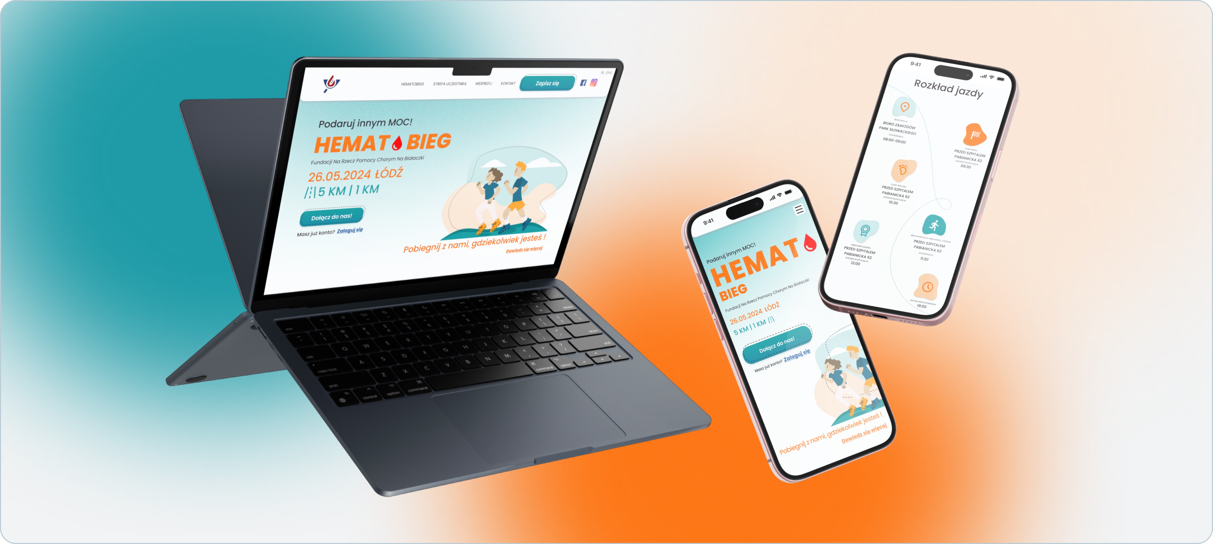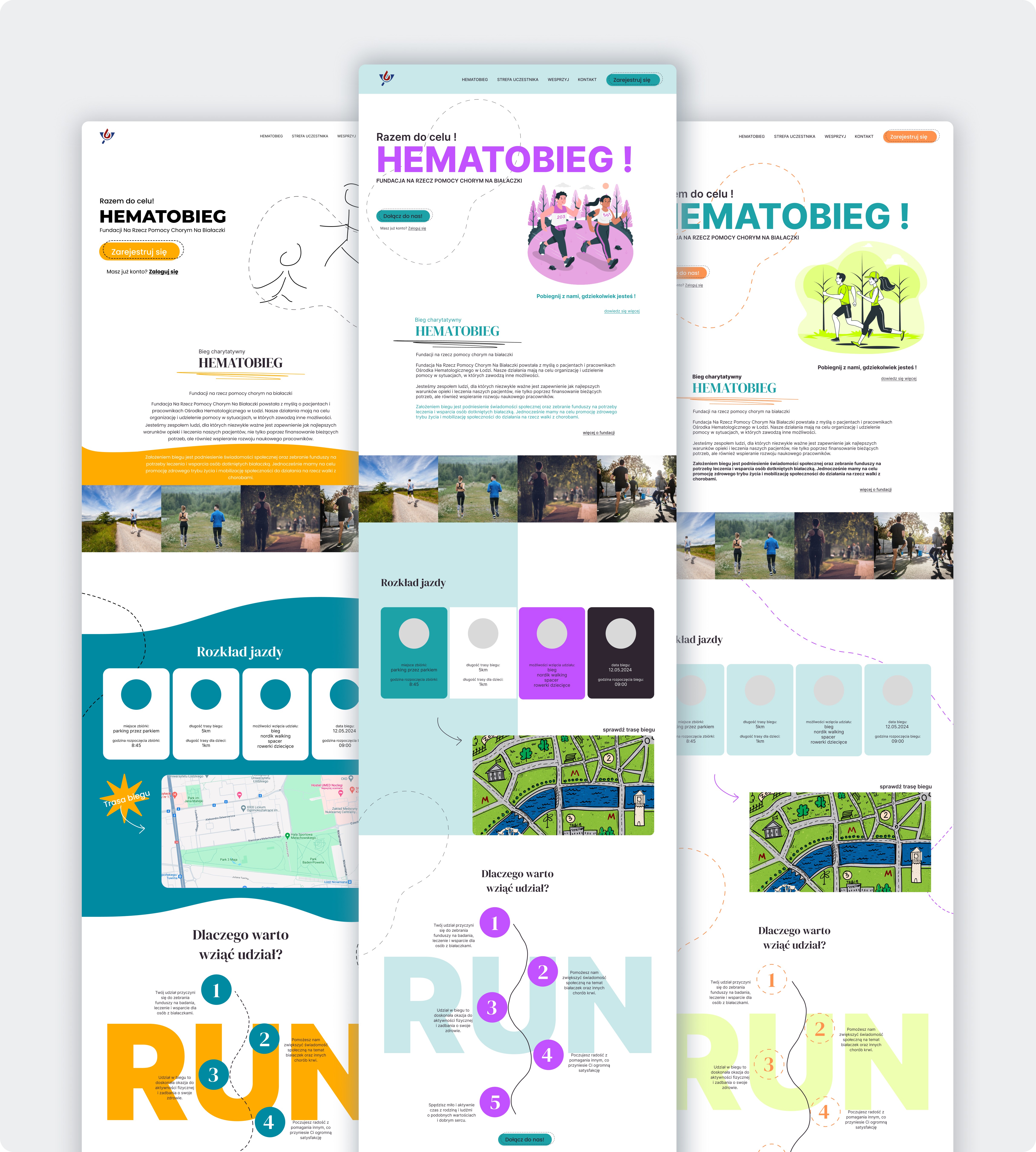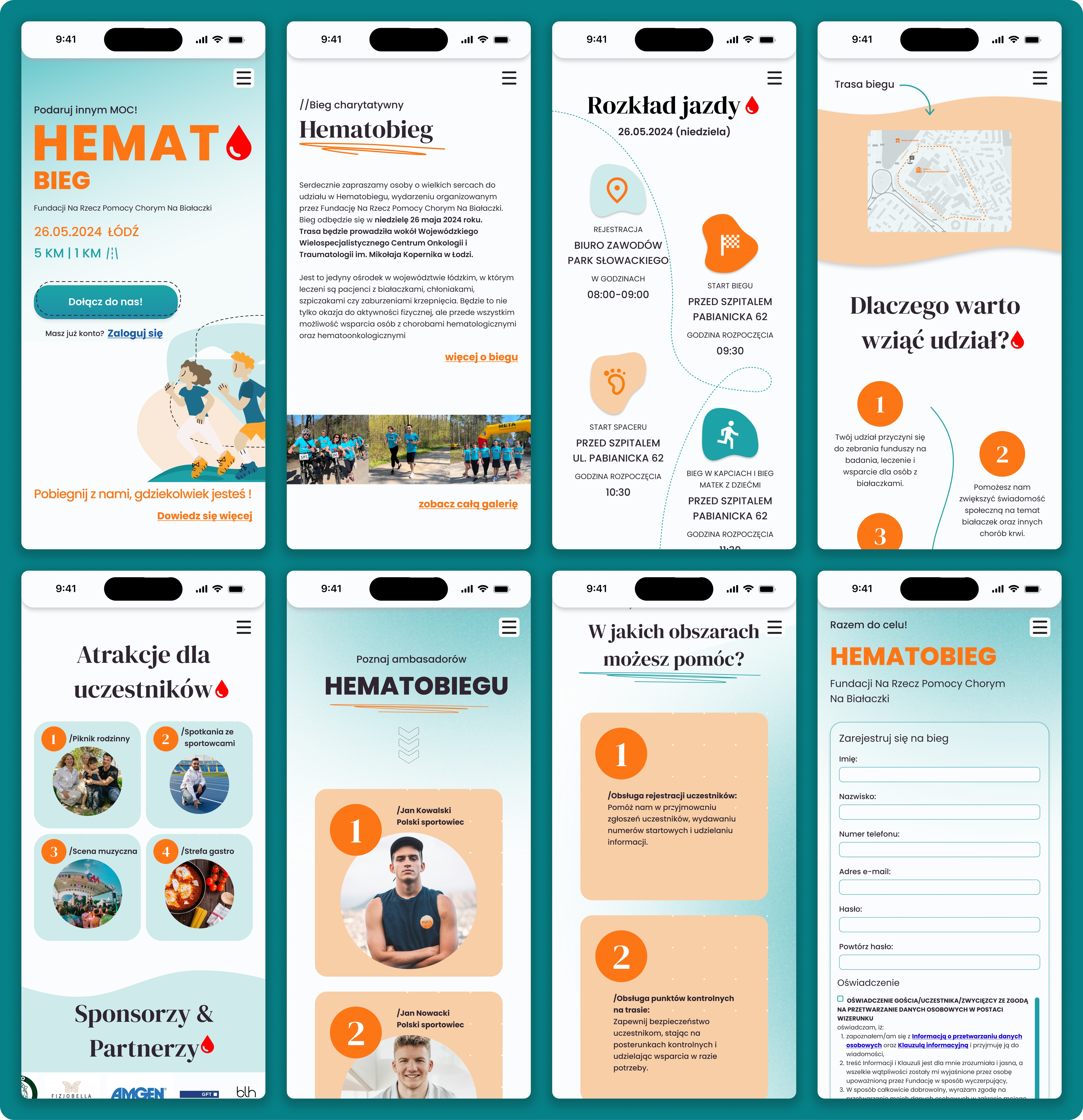 Hematobieg.org is a website created to support a charity run organized by the Foundation for Helping People with Leukemia. The platform enables volunteers and participants to register for the event, learn key details (location, schedule, route, attractions), and engage with the Foundation’s mission: helping individuals battling blood cancers. The website needed to be fast, intuitive, emotionally supportive, and accessible to users of all ages, including people with limited digital experience.